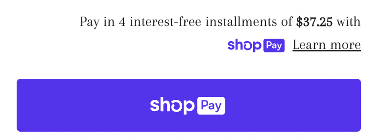 Simply select the Shop Pay icon on checkout to complete your payment in installments.